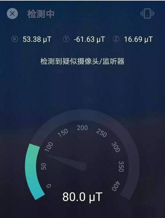 当磁场检测仪靠近针孔摄像头因为电路板工作会导致周边小范围内磁场变化引起报警器报警